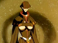A skilled temptress who knows how to use her sex appeal to catch her targets and opponents off guard, Hamushi is a woman self-assured in her abilities as an assassin and takes great pride in her physical beauty.[1] When pitted against the likes of Gene Starwind, she underestimated him on the basis of his lack of a reputation and the strength of her own power. When his attacks failed to harm her, Hamushi's arrogance allowed her to believe that she had the upper hand until she was killed by the #4 caster shell he used against her.[3]