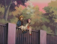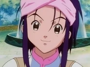 During her stay on the way station, she met Jim Hawking. Unaware of his relationship with Gene Starwind and the Outlaw Star, Hanmyo befriended Jim. The two bond and in a short amount of time appear to develop feelings for one another. Even her pets/co-pilots, Kemi and Mata, take a liking to Jim. Hanmyo, believing their meeting was fated, arranges to meet Jim later on during the day.[2]